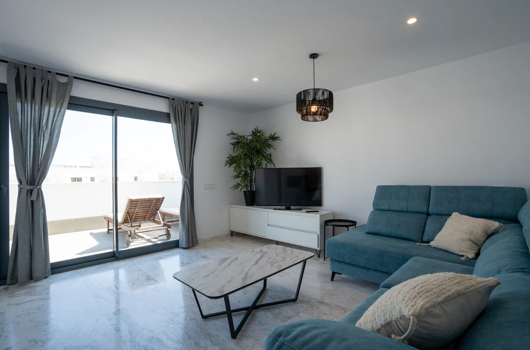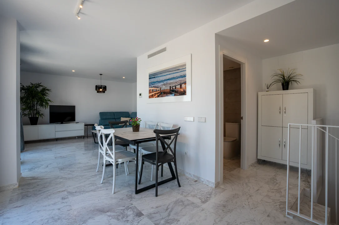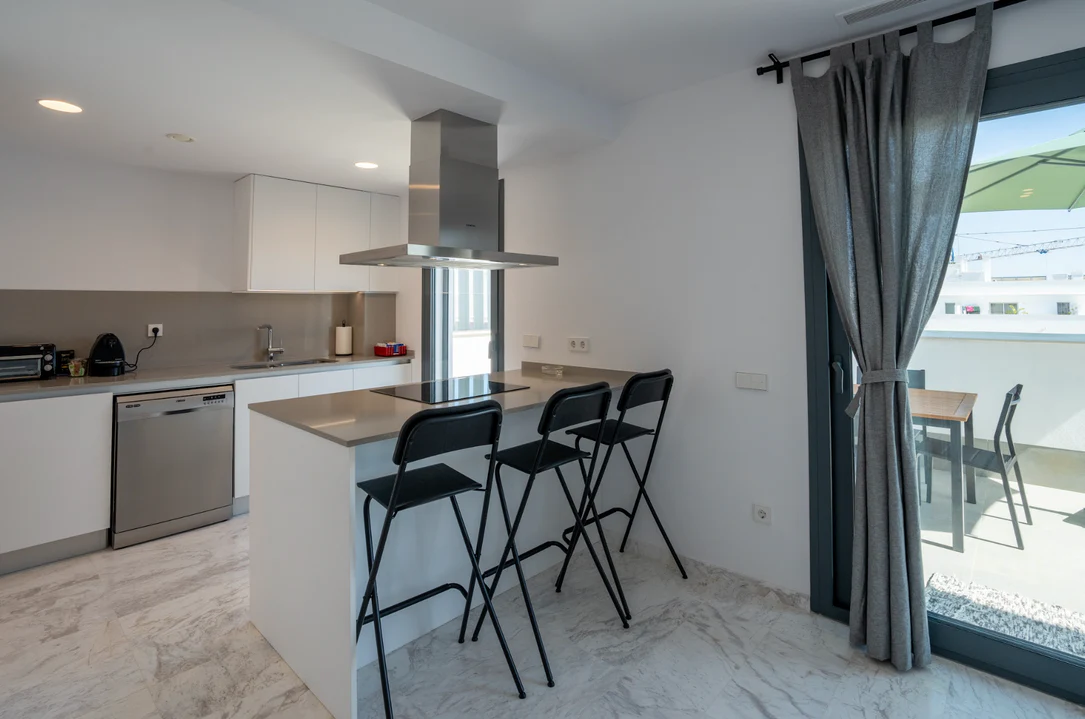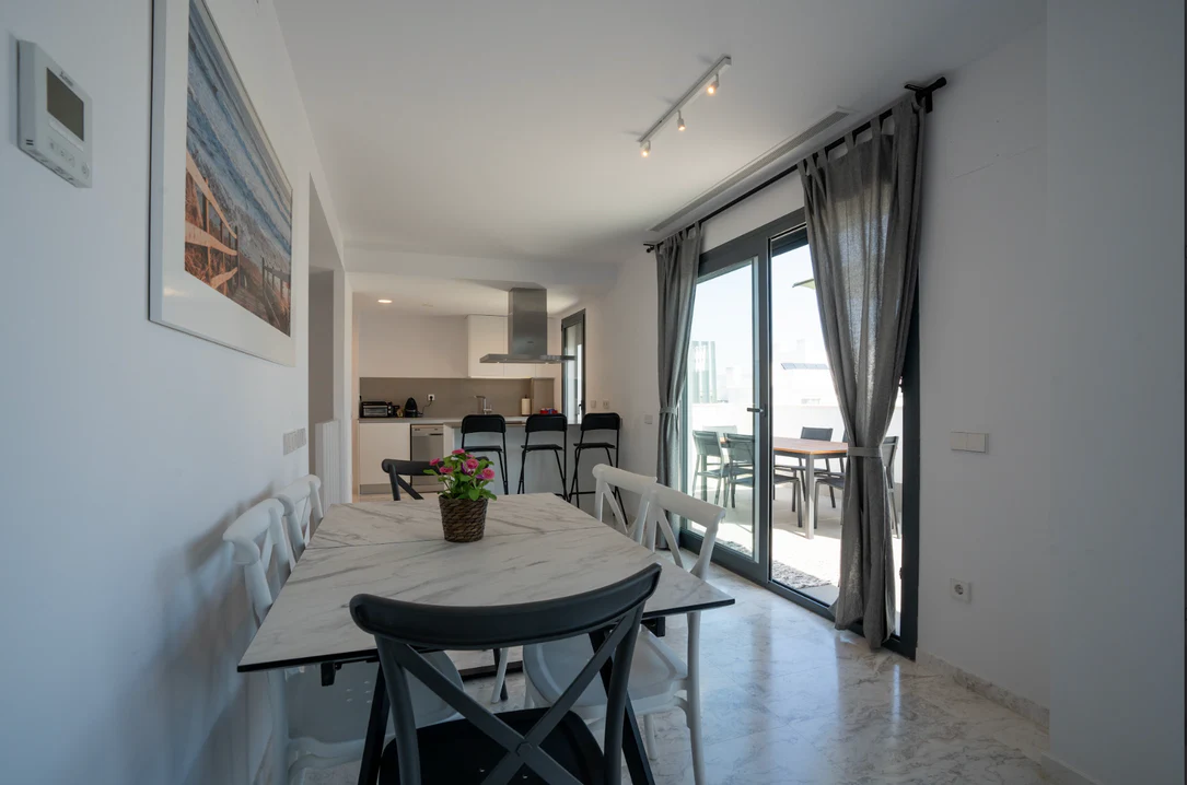 Discover and enjoy the ultimate luxury stay in this beautiful duplex penthouse located in the heart of Ibiza. The apartment offers a spacious living room, a fully equipped kitchen, three cozy bedrooms, and two and a half bathrooms. It also features a modern swimming pool and a functional office space, making it the perfect blend of comfort and style for an unforgettable retreat.